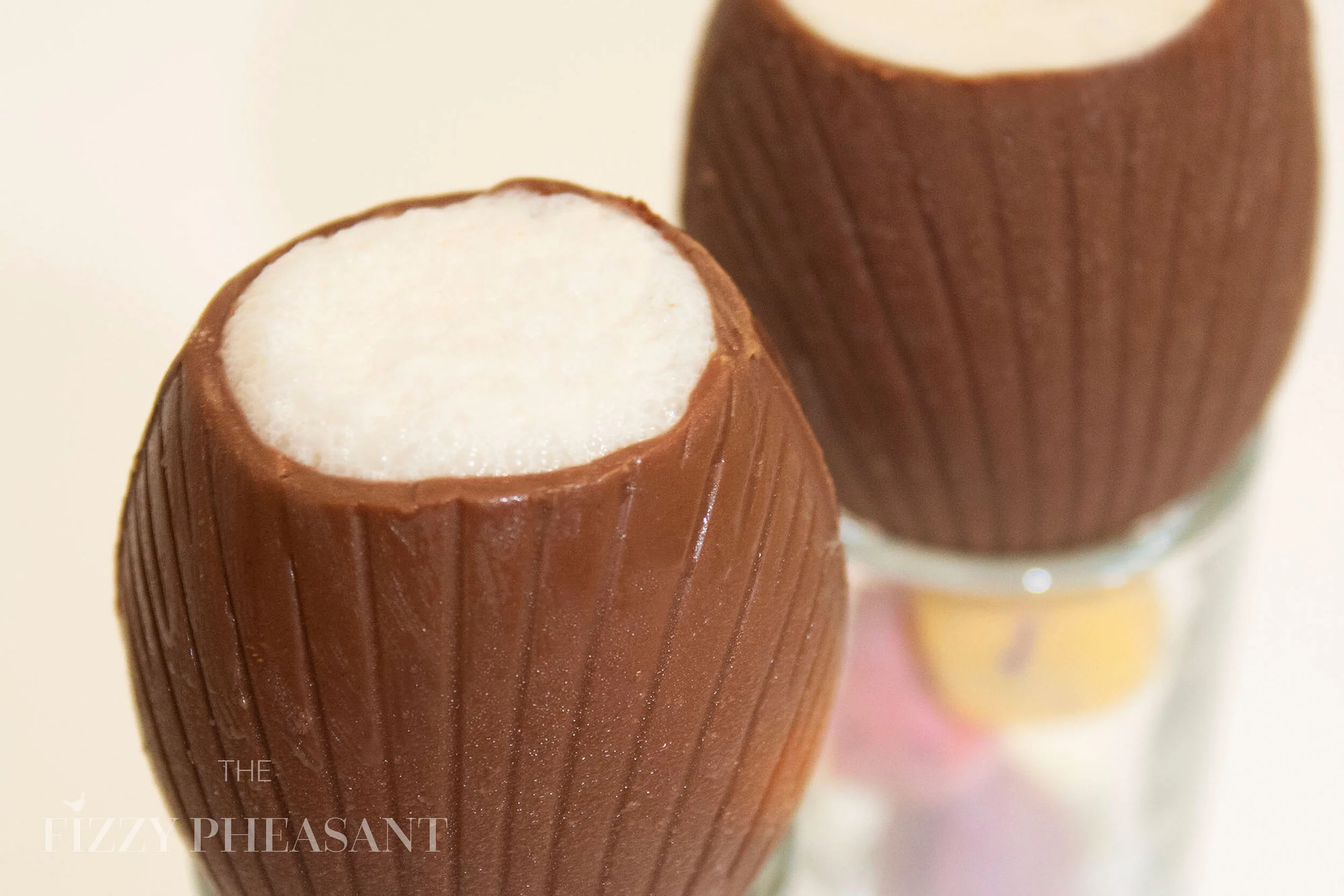A classic mudslide, popped into a hollow Easter egg – a chocolate shot glass, what’s more indulgent than that? You will need something to stand your mudslide egg shots in, but they won’t hang around long before you drink/eat them anyway! We used Shot glasses for this, but egg cups would be even cuter. We also thought dusting these with some cocoa powder would add an extra chocolate kick.